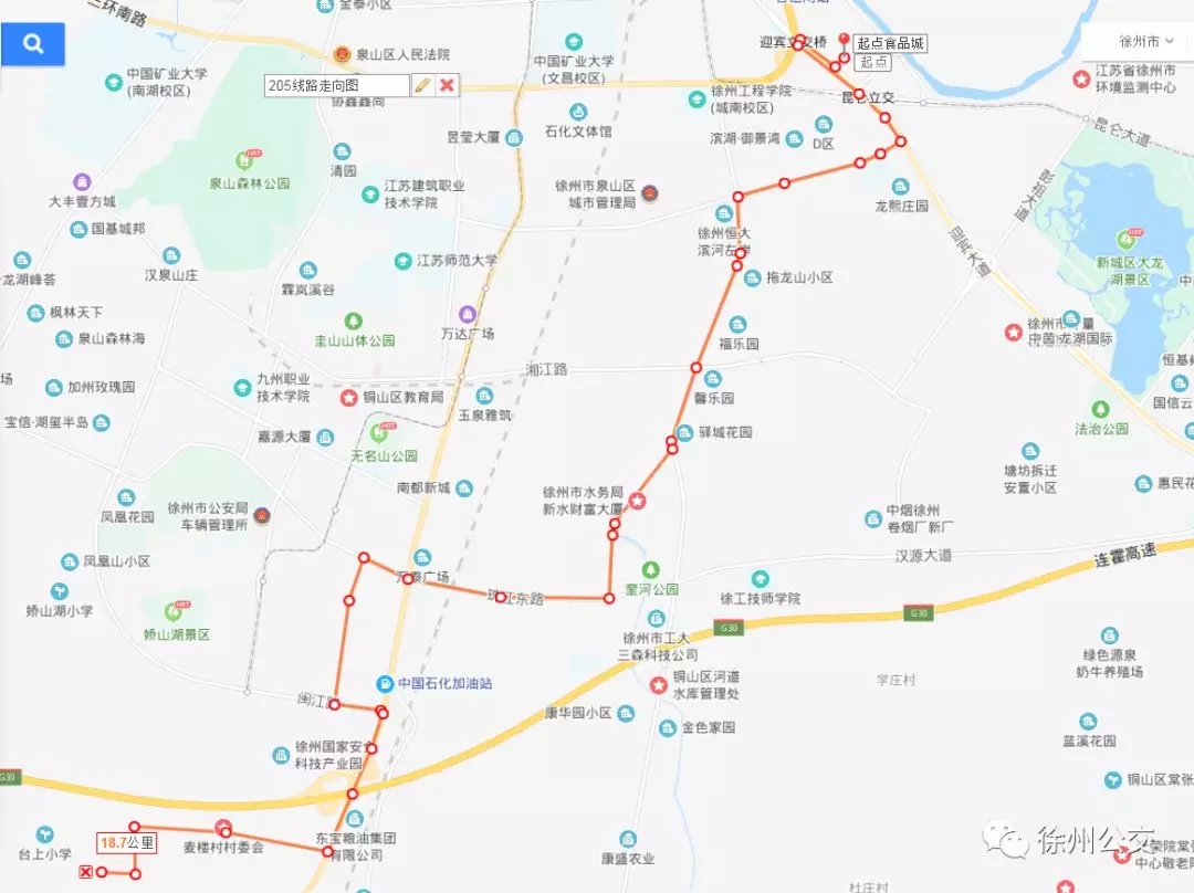 為滿(mǎn)足廣大市民出行需求,進(jìn)一步擴(kuò)大徐州高新區(qū)和市區(qū)的交通線(xiàn)網(wǎng),促進(jìn)區(qū)域交通和諧發(fā)展,為更多的市民提供便捷的城市客運(yùn)服務(wù),徐州公交開(kāi)通了205路線(xiàn),并于12月18日上午8:30分開(kāi)始試運(yùn)行。具體線(xiàn)路走向及停靠站點(diǎn)如下: