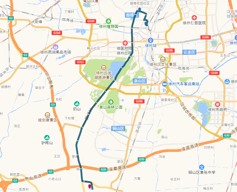 (2)沿途??空军c(公交站臺):新建北村、電力醫(yī)院、祥和小區(qū)、馬場村(中山北路)、鼓樓區(qū)政府、后勤學院、礦大南湖校區(qū)、國基城邦、臺上草莓小鎮(zhèn)。