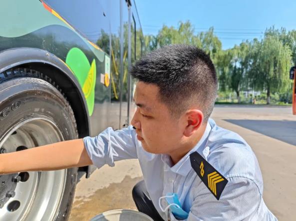 “衣服都濕透了,別弄了,先歇歇吧?!薄皼]事,我把衛(wèi)生弄好了就去?!?.....眼前這個(gè)小伙是603路的張?zhí)祧危弥萃r(shí)間,他一邊用布擦拭著輪轂,一邊用手擦拭臉上的汗珠。忙完后,發(fā)現(xiàn)發(fā)車時(shí)間已到,他立即回到駕駛室,等待乘客的到來和發(fā)班指令,沒來得及喝上一口水。
