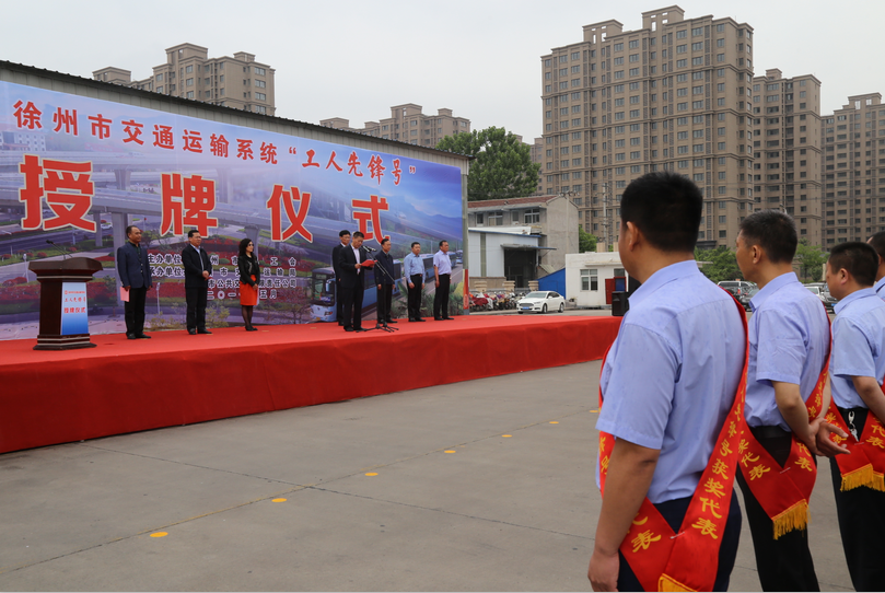 5月8日上午10點(diǎn),徐州市總工會(huì)在郭莊路停保場(chǎng)隆重舉行徐州市交通運(yùn)輸系統(tǒng)“工人先鋒號(hào)”授牌儀式。徐州市人大副主任、市總工會(huì)主席束志明,徐州市副市長(zhǎng)趙立群,市文明辦主任沈麗,市交通運(yùn)輸局局長(zhǎng)蔡前鋒,市總工會(huì)副主席劉洪印、副主席潘華,市交通運(yùn)輸局工會(huì)主席王培河以及公司董事長(zhǎng)、總經(jīng)理杜紅軍等領(lǐng)導(dǎo)出席了授牌儀式。來(lái)自公交公司、汽車客運(yùn)總站等交通運(yùn)輸行業(yè)的300余名員工參加了授牌大會(huì)。