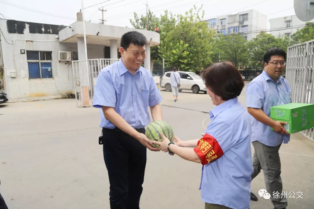 為切實關(guān)心關(guān)愛堅守一線的公交員工,徐州公交認真開展“夏日送清涼”活動,7月22日上午11:45,領(lǐng)導(dǎo)班子分4組深入站臺、調(diào)度室、修理車間等17處基層一線,為奮戰(zhàn)一線、堅守崗位的員工送上涼茶、西瓜等清涼物資,向冒著高溫酷暑、辛勤工作的一線員工表示敬意和慰問,叮囑他們落實好各項防暑降溫措施,確保在高溫環(huán)境下市民能正常清涼出行。