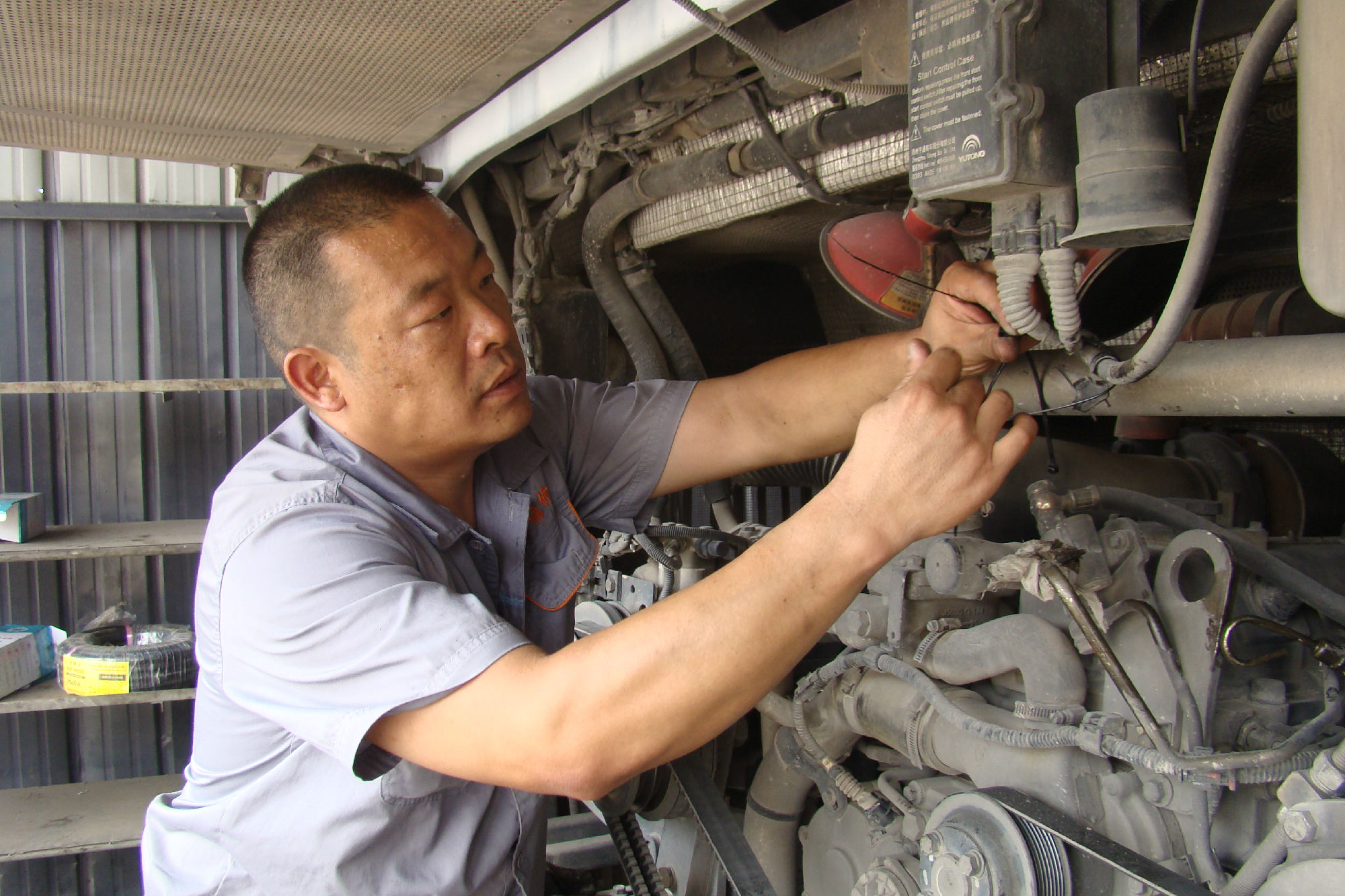 有這樣一群人,他們的雙手總是沾滿油污、他們的衣服總是被汗水浸濕,他們整天蹲在地溝里、躺在汽車下。腿麻了、脖子硬了,腰酸了,他們沒有一句怨言。他們就是默默奉獻、任勞任怨的修理工——公交車的白衣天使。宋鵬飛就是他們中的一員。