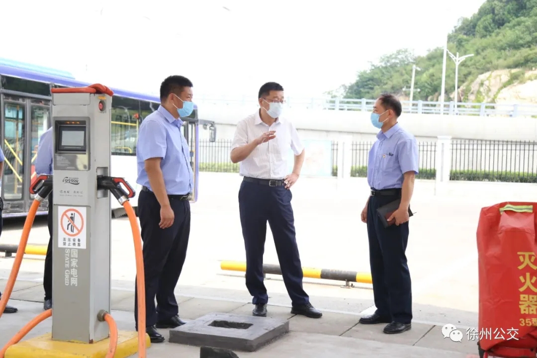 賈泉涌等一行先后來(lái)到徐州東站的停保場(chǎng)、充電站、始發(fā)站等處現(xiàn)場(chǎng)查看調(diào)研,認(rèn)真聽(tīng)取了車輛充電用電、場(chǎng)站建設(shè)、線網(wǎng)規(guī)劃等相關(guān)工作情況的匯報(bào)。