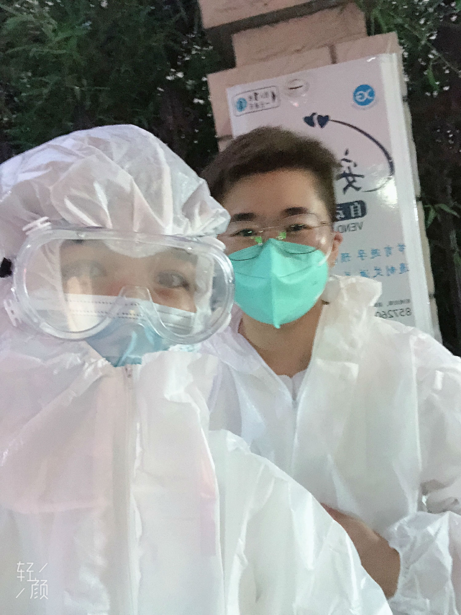 “請(qǐng)大家不要著急,排好隊(duì)、戴好口罩,保持一米距離。”身穿防護(hù)服的她們高聲引導(dǎo)。短短兩天時(shí)間她們親身體驗(yàn)到了醫(yī)護(hù)人員的辛苦。“這是我們倆第一次穿上防護(hù)服,和之前電視里看到一樣,脫下防護(hù)服后皮膚上有深深的勒痕,但是穿上的那一刻就感到責(zé)任重大!”兩個(gè)年輕人“苦中作樂”用照片記錄下自己這段特殊的經(jīng)歷。
