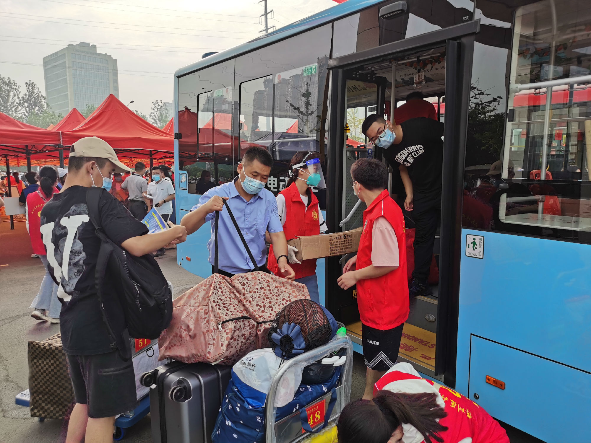 9月23日7時(shí)許,城北公司經(jīng)理室?guī)ьI(lǐng)相關(guān)科室人員早早來到學(xué)校待命,提前發(fā)放車頭引導(dǎo)標(biāo)識(shí),并在學(xué)校志愿者的配合下,有序地將新生接送至宿舍樓??紤]到新生進(jìn)校后攜帶行李較多,公司分別在行李集中點(diǎn)、宿舍樓登記點(diǎn)安排管理人員,配合校方維持現(xiàn)場秩序,確保車輛在倒車、行車過程中安全有保障。
