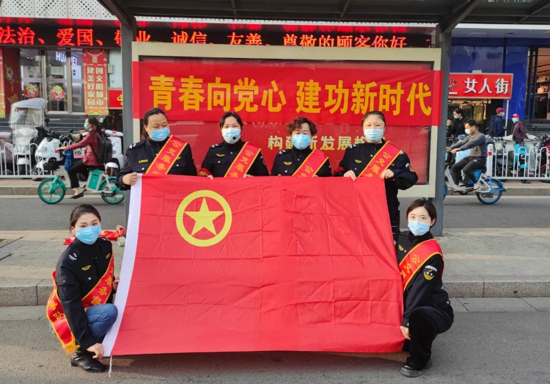 在建團(tuán)100周年之際,服務(wù)督導(dǎo)隊(duì)黨支部組織黨員、青年團(tuán)員以黨帶群團(tuán)方式,走進(jìn)公交站臺(tái)開展“青年心向黨 建功新時(shí)代”志愿服務(wù)活動(dòng)。