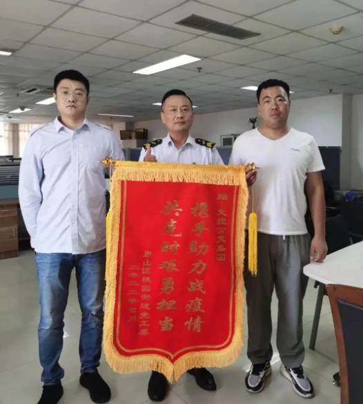8月4日上午,泉山區(qū)桃園街道辦事處把一面印有“攜手助力戰(zhàn)疫情,共克時艱勇?lián)敗钡腻\旗和一封感謝信送到公交集團。