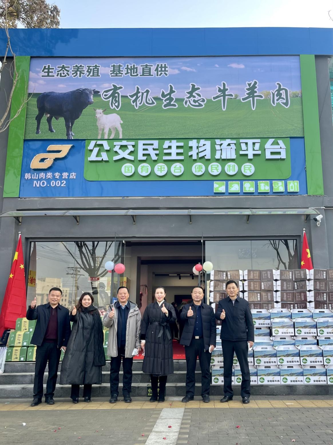 為進(jìn)一步保障周邊居民生活需求,方便廣大市民采購生鮮肉品,1月8日上午,徐州公交民生物流平臺(韓山肉類專營店)正式開業(yè)。開業(yè)當(dāng)天,公交集團(tuán)黨委副書記、總經(jīng)理袁夫松,黨委副書記、紀(jì)委書記、工會主席竇同銀,宿州草源牧業(yè)集團(tuán)公司董事長馬良兵,徐州土巴豬生態(tài)農(nóng)業(yè)有限公司總經(jīng)理鄭紅梅一行到店祝賀。