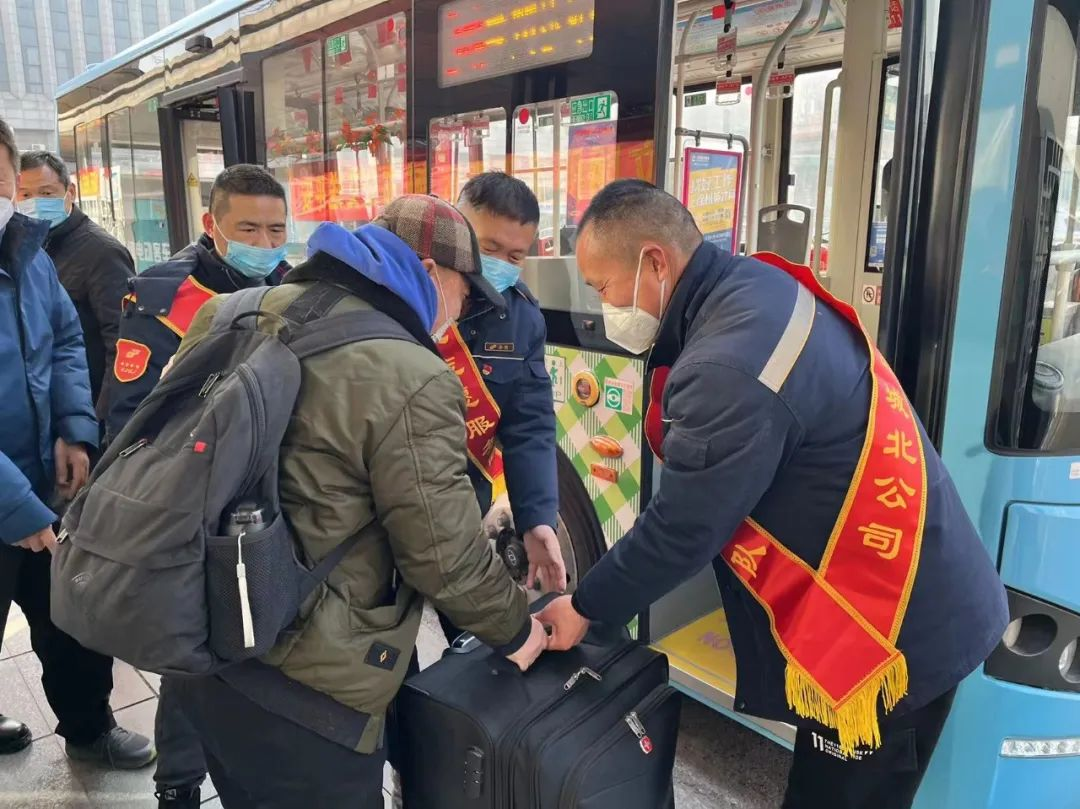春運(yùn)期間,城北巴士公司黨支部組織愛心服務(wù)隊(duì)和黨員先鋒崗在徐州站等客流密集站點(diǎn)開展志愿服務(wù),維持現(xiàn)場乘車秩序,幫助乘客搬運(yùn)行李,開展“三品”檢查,他們以嚴(yán)謹(jǐn)?shù)淖黠L(fēng)、熱情的態(tài)度、溫暖的話語,贏得了乘客廣泛好評。此外,文明引導(dǎo)員在站點(diǎn)詳細(xì)記錄客流情況,提醒乘客戴好口罩,有序上車,并傾聽乘客反饋意見。