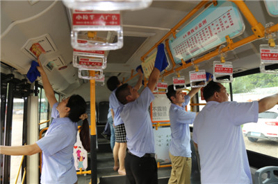 機(jī)關(guān)黨支部黨員幫助駕駛員打掃車廂衛(wèi)生