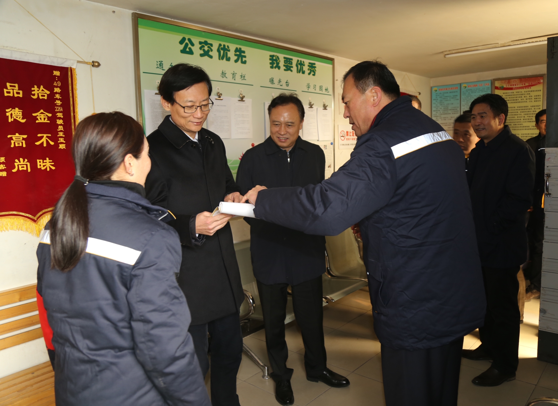 1月18日上午,徐州市副市長(zhǎng)趙立群、副秘書(shū)長(zhǎng)陳剛等領(lǐng)導(dǎo),在市交通運(yùn)輸局局長(zhǎng)蔡前鋒、副局長(zhǎng)李開(kāi)春,公司董事長(zhǎng)、總經(jīng)理杜紅軍等的陪同下,來(lái)到公交保養(yǎng)廠調(diào)研視察。