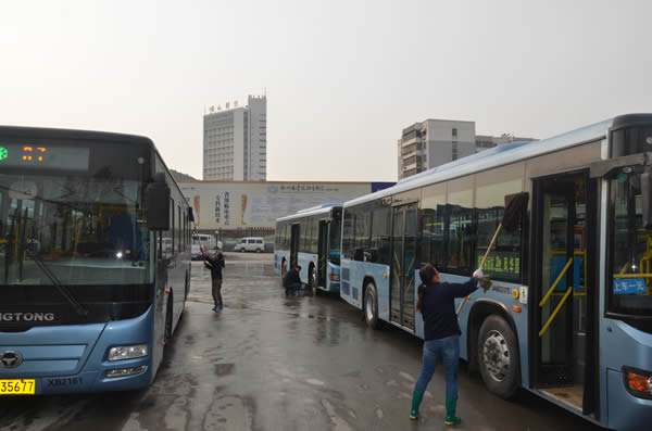 特別是雨后,所有管理人員、調(diào)度員、駕乘人員齊上陣,利用休停和晚收車后的時(shí)間,加班加點(diǎn)對(duì)2300多臺(tái)營運(yùn)車輛和各公交首末站、停車場、調(diào)度室等環(huán)境衛(wèi)生進(jìn)行了徹底的衛(wèi)生大掃除,清理衛(wèi)生死角。由機(jī)關(guān)職能部室和服務(wù)督導(dǎo)隊(duì),以及各營運(yùn)公司組成檢查組,每天都要在線路開展衛(wèi)生專項(xiàng)檢查。針對(duì)檢查中發(fā)現(xiàn)的問題限期整改,責(zé)任到人。徐州公交在每臺(tái)車的前擋風(fēng)玻璃處放置了創(chuàng)衛(wèi)標(biāo)語,在公交首末站懸掛創(chuàng)衛(wèi)標(biāo)語37個(gè),在700多臺(tái)公交車載電視中滾動(dòng)播出創(chuàng)衛(wèi)宣傳片,制作了創(chuàng)衛(wèi)健康宣傳專版30多個(gè),在每個(gè)調(diào)度室張貼了《中國公民健康素養(yǎng)66條》,在所有停車場、辦公區(qū)域、車廂內(nèi)張貼了禁煙標(biāo)識(shí)。