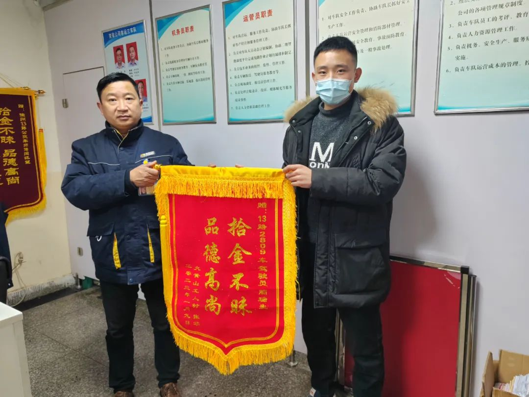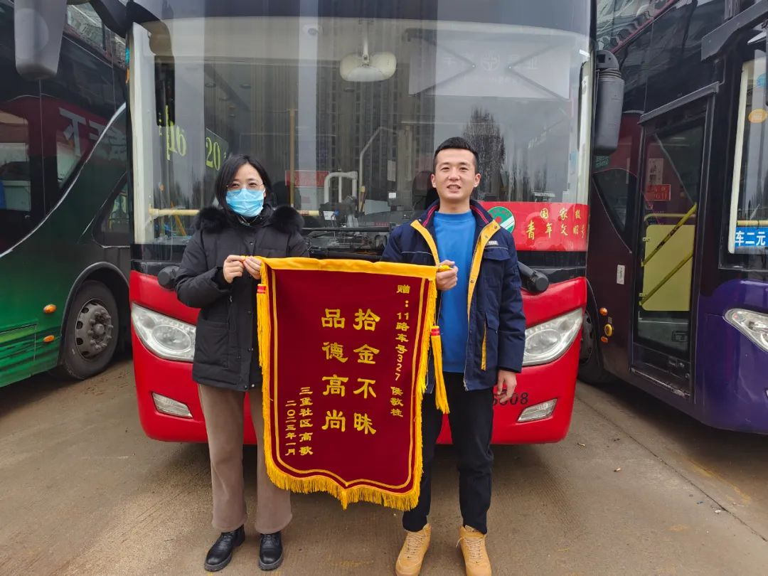 1月19日,失主郭女士通過(guò)公交集團(tuán)熱線電話聯(lián)系到車隊(duì)管理人員,經(jīng)過(guò)車隊(duì)的查詢落實(shí)后,郭女士與工作人員約好時(shí)間前來(lái)取回失物。1月20日,郭女士送來(lái)了一面錦旗錦旗,并撥打了熱線電話12345表?yè)P(yáng)駕駛員王怡拾金不昧的精神。王怡熱心助人的行為充分體現(xiàn)了徐州公交駕駛員高尚的道德品質(zhì),他用實(shí)際行動(dòng)體現(xiàn)了 “向善、向美、向上”的價(jià)值追求,在平凡的崗位上傳遞公交正能量。
