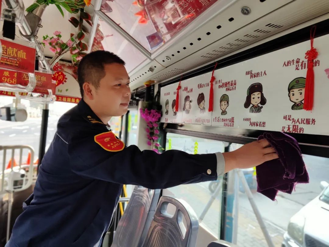 ]]>裴振華是新區(qū)巴士公司47路6731車駕駛員,47路從萬(wàn)寨村到第一人民醫(yī)院南門總站,途經(jīng)32個(gè)站點(diǎn),裴振華每天在這條線路上迎來(lái)送往,重復(fù)的路線,重復(fù)的站臺(tái),重復(fù)的風(fēng)景,一路上有多少個(gè)路口、信號(hào)燈,哪個(gè)路段危險(xiǎn)系數(shù)高、何時(shí)人、車流量大他都了然于心。今年的春運(yùn),他又和同事們像平常一樣堅(jiān)守工作崗位。早上6點(diǎn),裴振華提前1個(gè)小時(shí)來(lái)到萬(wàn)寨村總站,正做著發(fā)車前的準(zhǔn)備工作,檢查機(jī)油、水箱、電瓶及車內(nèi)設(shè)施等,并仔細(xì)打掃車廂內(nèi)外,為乘客營(yíng)造一個(gè)干凈舒適的乘車環(huán)境。